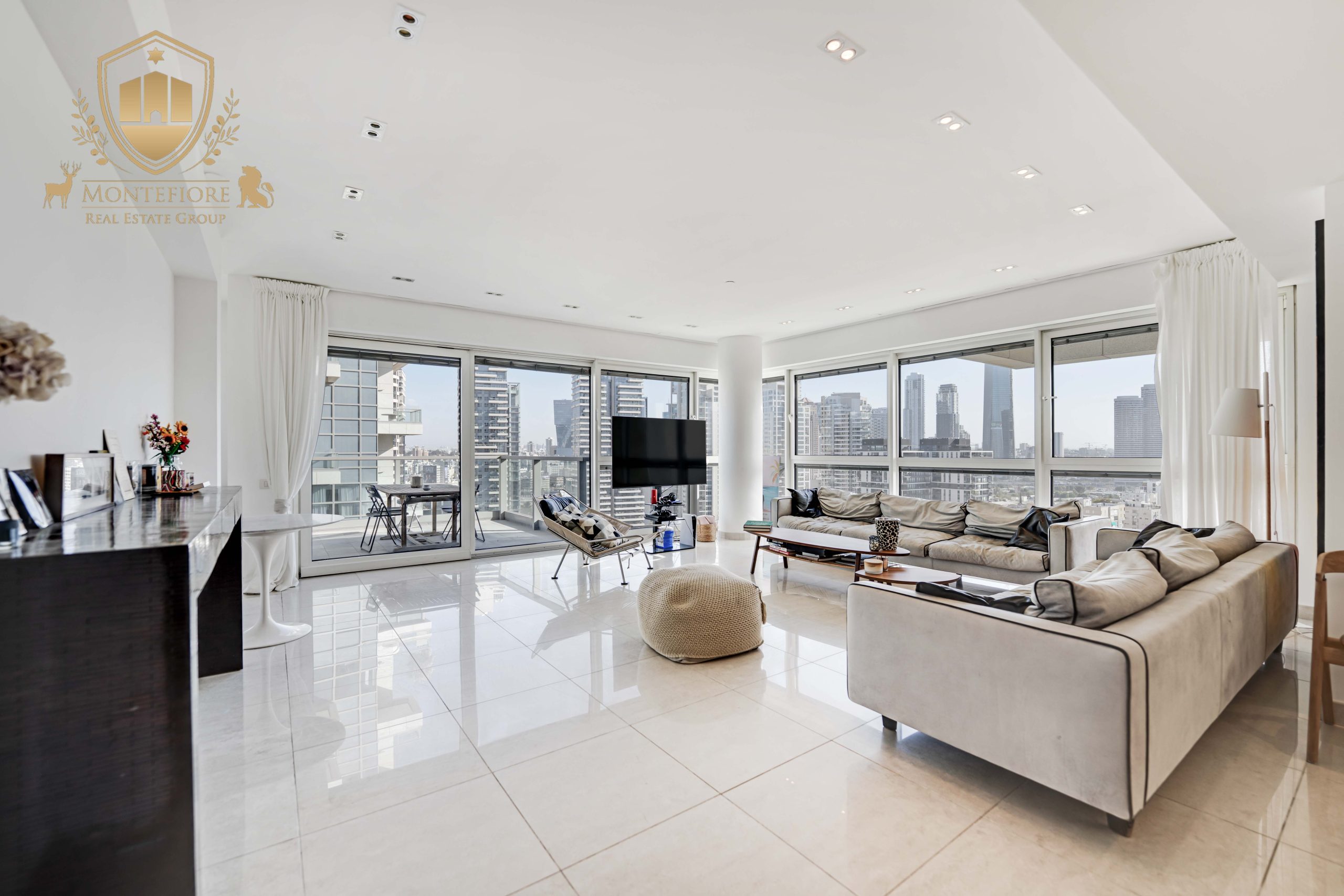 Discover an exceptional 4-room (3.5-bedroom), 2.5-bathroom luxury apartment in one of Tel Aviv’s most exclusive residential complexes, the renowned Akirov Towers. Offering approx. 155 sqm of beautifully designed interior space and an additional 10 sqm sun balcony, this residence sits on a high floor and enjoys spectacular open views across Tel Aviv’s skyline.