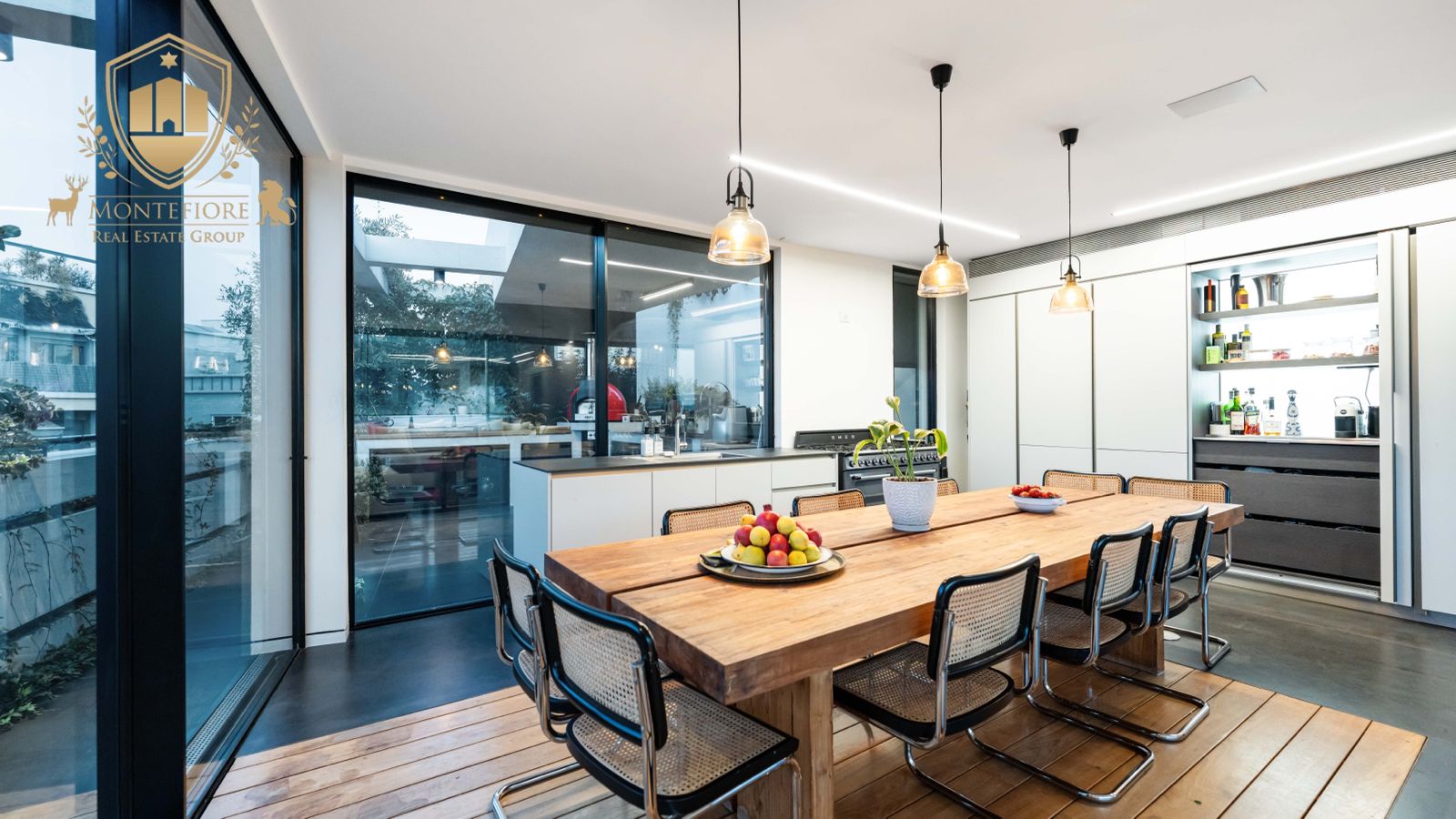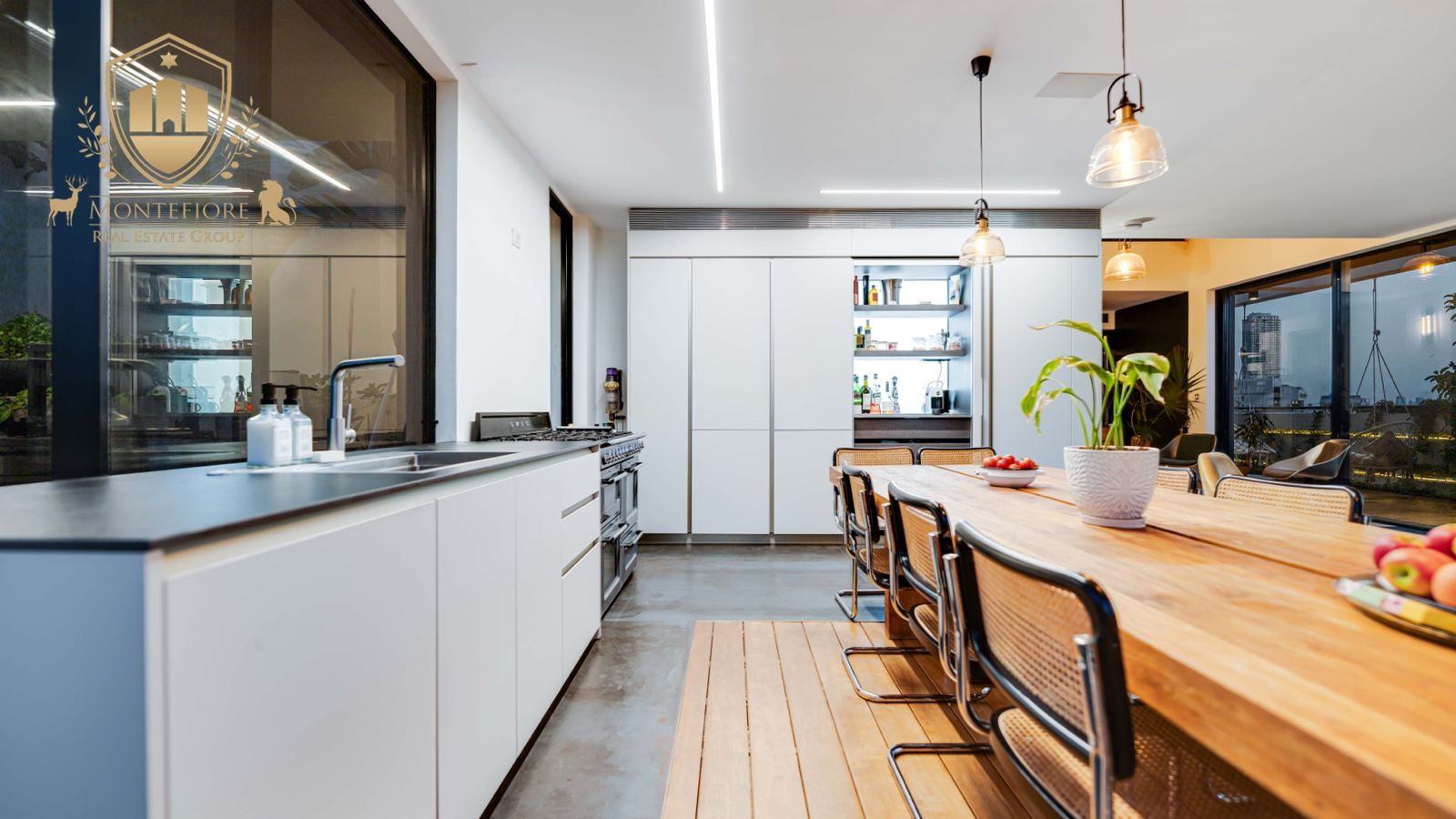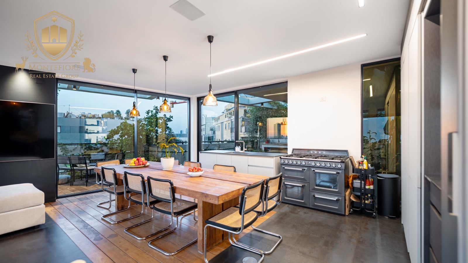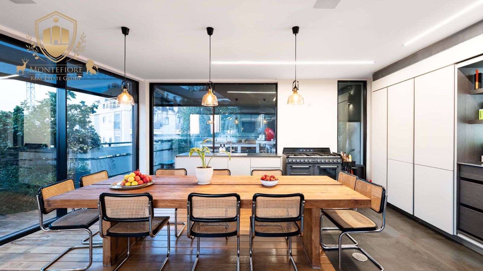 - מטבח מאובזר במוצרי החשמל היוקרתיים ביותר, לרבות תנור וכיריים איכותיים מבית SMEG, 2 מקררים אינטגרליים, טוחן אשפה ועוד