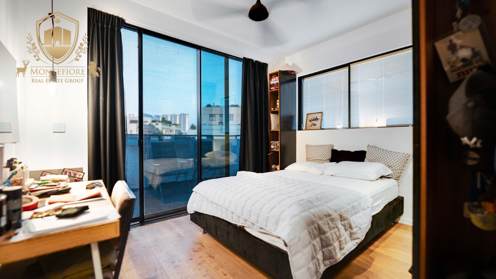- 4 חדרי שינה נהדרים לרבות יחידת מאסטר נהדרת עם חדר רחצה צמוד ויציאה למרפסת, 2 חדרי שינה עם מרפסת פרטית, וחדר ממ״ד. כל חדרי השינה מגיעים עם ארונות בגדים בהתאמה אישית וריצוף מעץ אלון מלא מעושן.
