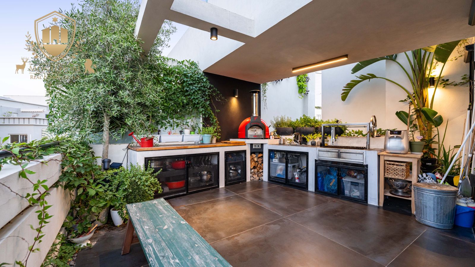 - 2 מטבחי חוץ, כולל מטבח חוץ ענק עם טאבון, מנגל יוקרתי והמון שטח אחסון