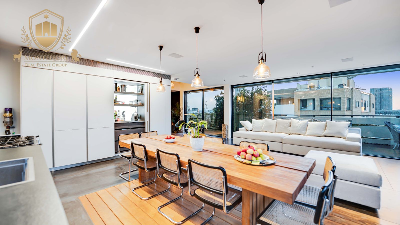הדירה שוכנת מרחק דקות הליכה מהים, שוק הכרמל, שדרות רוטשילד, תיאטרון הבימה, רחוב שינקין התוסס, נווה צדק, מרכזי הקולינריה ובתי הקפה הטובים בעיר, בבניין היסטורי משוחזר משנת 1922, בסגנון אקלקטי מרהיב, ששופץ ושומר בקפידה בשנת 2021. מעל הבניין הקלאסי נוספו קומות חדשות, ובראשן – פנינת הנדל״ן הזו: פנטהאוז יוקרתי ומוקפד, המשתרע על קומה שלמה, בשטח של כ־140 מ״ר (ניתן לקבל 45 מ״ר נוספים בתוספת תשלום של 6 מליון שקלים).